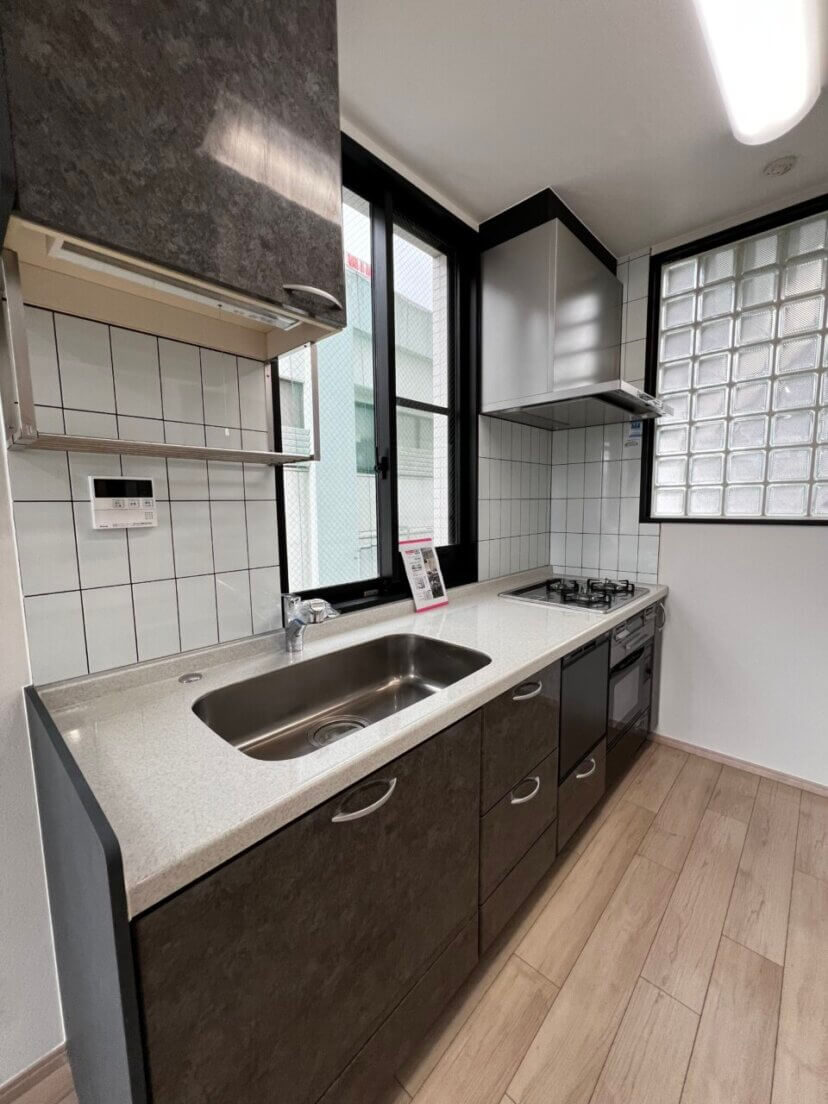 コーティング、洗面台新調、キッチンガスコンロとレンジフード新調