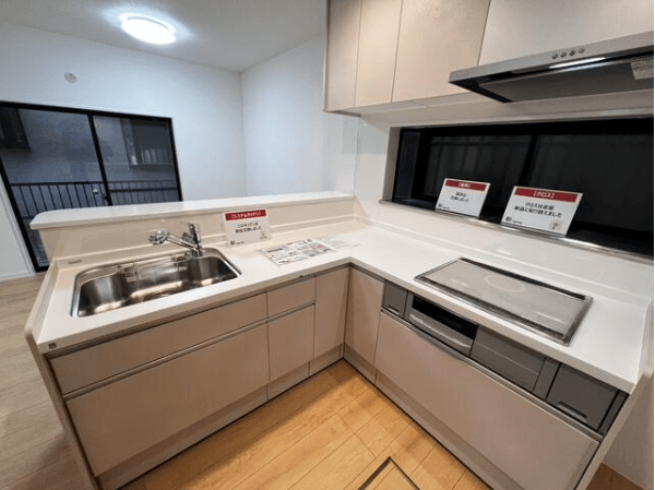 カウンターキッチン、3口ガスコンロ、