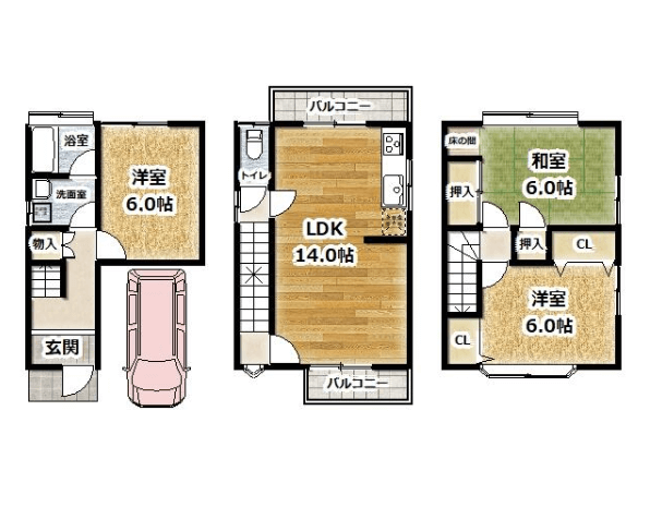 【中古一戸建】伏見区羽束師志水町(中書島) 3階建 3LDK
