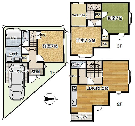 【中古戸建】伏見区桃山町丹下(墨染駅)3階建 3LDK