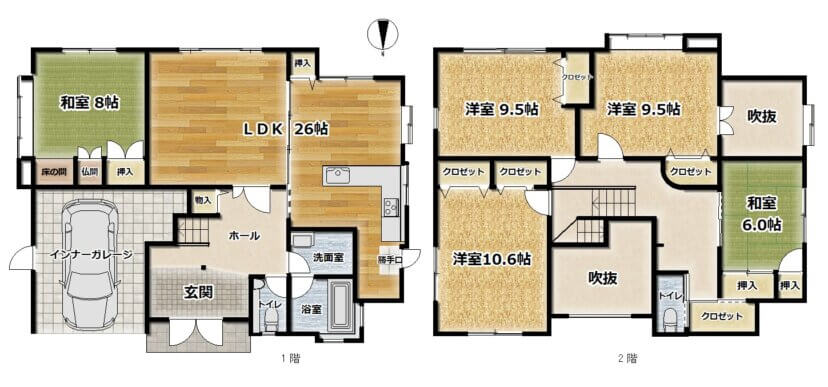 □インナーガレージ付きで防犯性が高く、風雨からも守れます。
