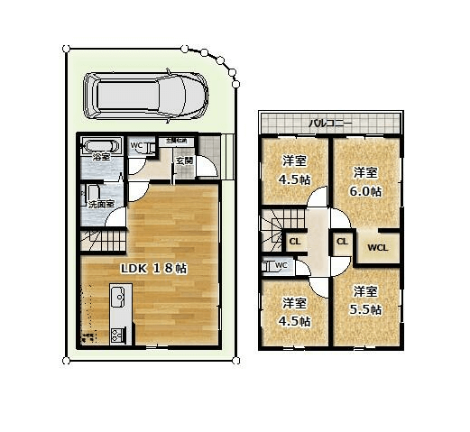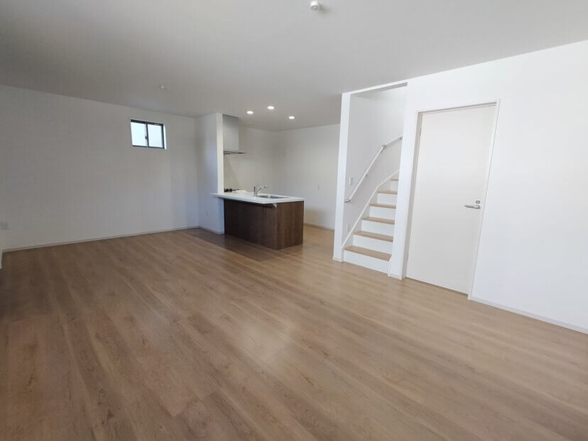 LDKは約18帖あり、1階に水廻りを集約。