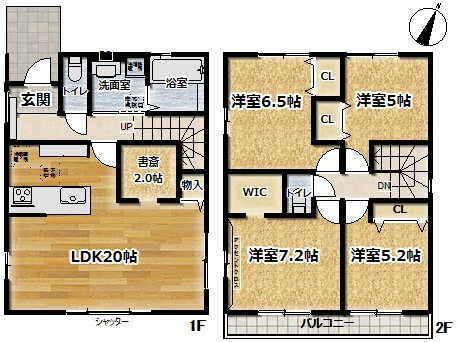 駐車スペース2台!LDKゆとりの20帖の新築戸建てです。